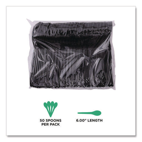 100% Recycled Content Cutlery, Soup Spoon, Plastic, Black, 50/Pack, 20 Packs/Carton