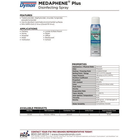 Medaphene Plus Disinfectant Spray, 15.5 oz Aerosol Spray, 12/CartonNote: This is a non-returnable item.