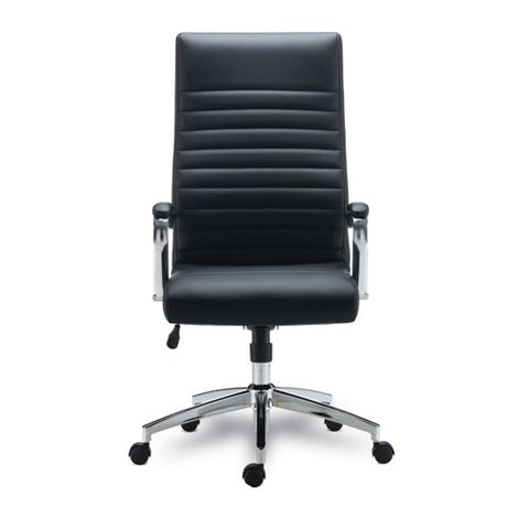 Alera Eddleston Leather Manager Chair, Supports Up to 275 lb, Black Seat/Back, Chrome Base