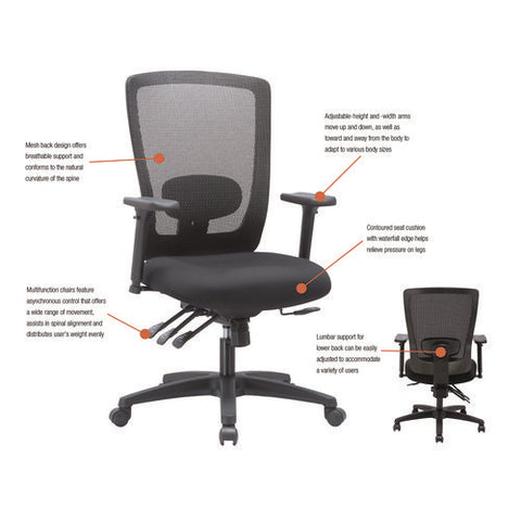 Alera Envy Series Mesh Mid-Back Multifunction Chair, Supports Up to 250 lb, 17" to 21.5" Seat Height, Black