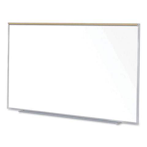 Magnetic Porcelain Whiteboard with Aluminum Frame and Maprail, 96.53" x 60.47", White Surface, Satin Aluminum Frame