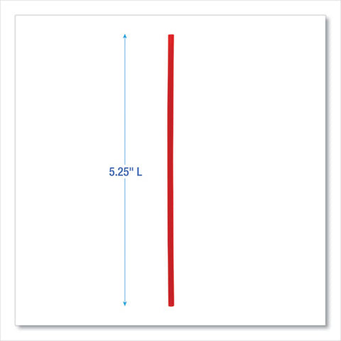 Single-Tube Stir-Straws,5.25", Polypropylene, Red, 1,000/Pack, 10 Packs/Carton