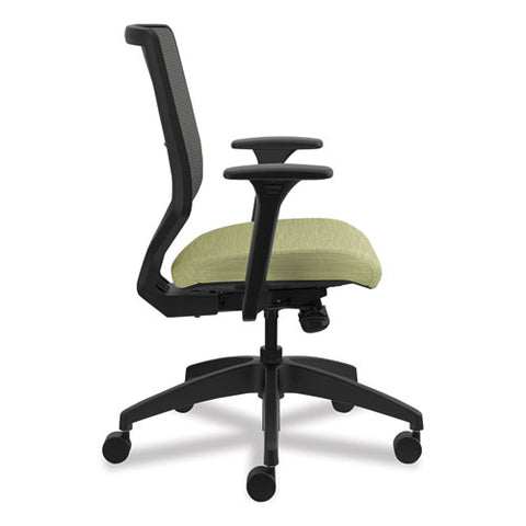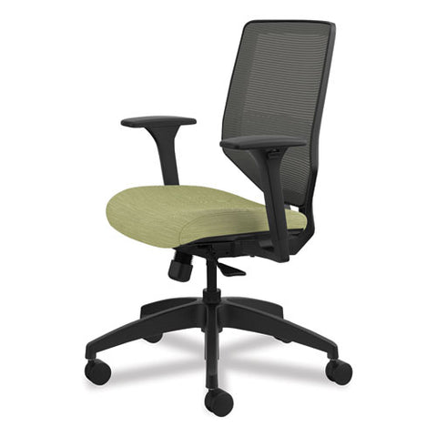 Solve Series Mesh Back Task Chair, Supports Up to 300 lb, 18" to 23" Seat Height, Meadow Seat, Charcoal Back, Black Base