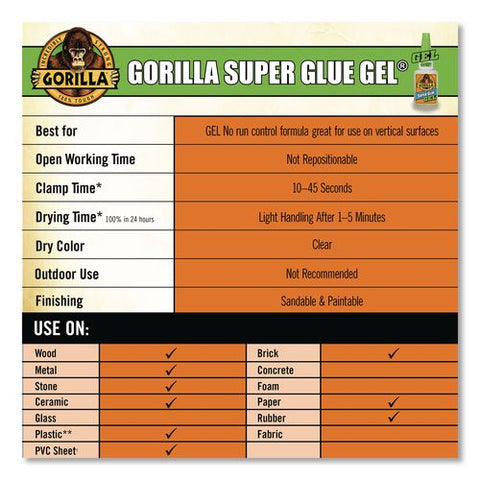 Super Glue Gel, 0.53 oz, Dries Clear, 4/Carton