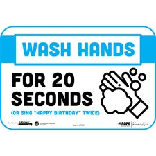 Tabbies WASH HANDS FOR 20 SECONDS Wall Decals - Print/Message "Wash Hands For 20 Seconds (Or Sing "Happy Birthday" Twice)" - 9" Width x 6" Height - Rectangular Shape - Repositionable, Pressure Sensitive, Tear Resistant, Removable - Vinyl - Blue, White - 9