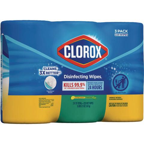 Disinfecting Wipes, Value Pack, Bleach Free Cleaning Wipes, 1-Ply, 7x8, Fresh Scent/Citrus Blend, White, 75/Canister, 3/Pack